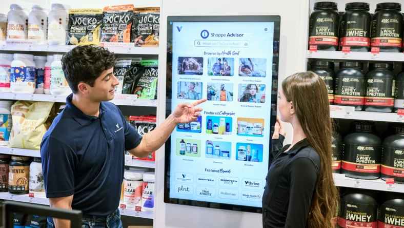 Using the digital touchscreen, customers can access detailed product information and expert-sourced wellness content on the Vitamin Shoppe website, including articles and videos searchable by health goals, trends and brands, as well as real-time inventory checks in stores and online.