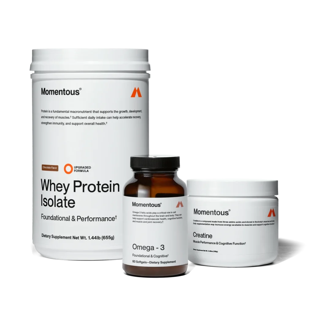 For the performance-minded athlete, Momentous’ bestselling trio includes protein, creatine and omega-3 supplements for building a strong daily foundation for energy, recovery and mental clarity.